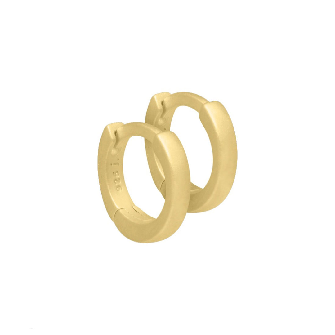 Kleine matte Ohrringe bzw. Creolen Earring Maude von Aqua Dulce. Die Klappcreolen sind von vorn eckig. Material: 925 Sterlingsilber bzw. Gelbgold vergoldet. Größe: ca. 1 cm.